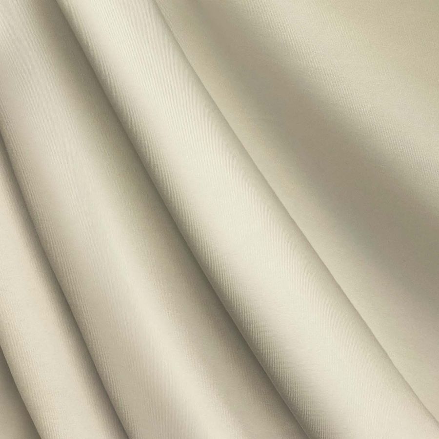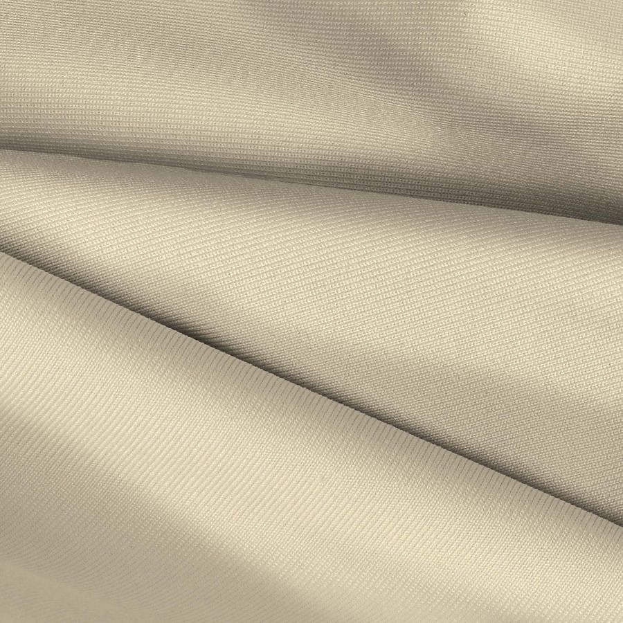 La tela base es una Lycra de Poliéster - Nairobi de 270 gr/m2 de composición 82% poliéster y 18% elastano, de 150cm de ancho. El color liso impreso es de color crudo-seda cruda, con un CMYK de 4 9 28 0. Este color refleja una tonalidad suave y luminosa, con un sutil tono beige que lo hace muy adaptable a diferentes estilos y combinaciones, especialmente con tonos fríos como el azul, verde y rosa.