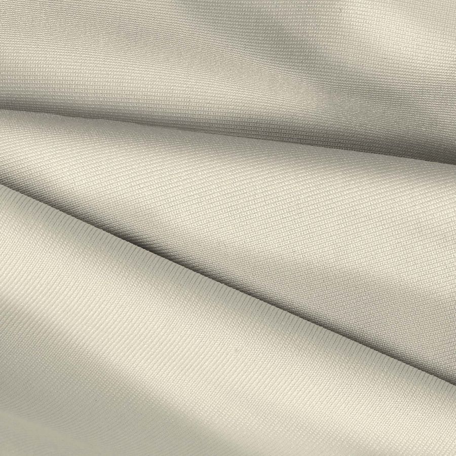 La tela base es una Lycra de Poliéster de 270 gr/m2, compuesta por un 82% de poliéster y un 18% de elastano, con un ancho de 150 cm y una textura elástica. El color liso impreso es un tono suave, entre blanco y cáscara de huevo, que se consigue con una combinación de tinta Cyan (2), Magenta (4) y Yellow (18) y se representa a través del CMYK 2 4 18 0. Este color secundario transmite serenidad y armonía, evocando la pureza y la limpieza. Combina con otros tonos claros y pasteles como el rosa palo, el celeste o el beige, generando un efecto suave y elegante.