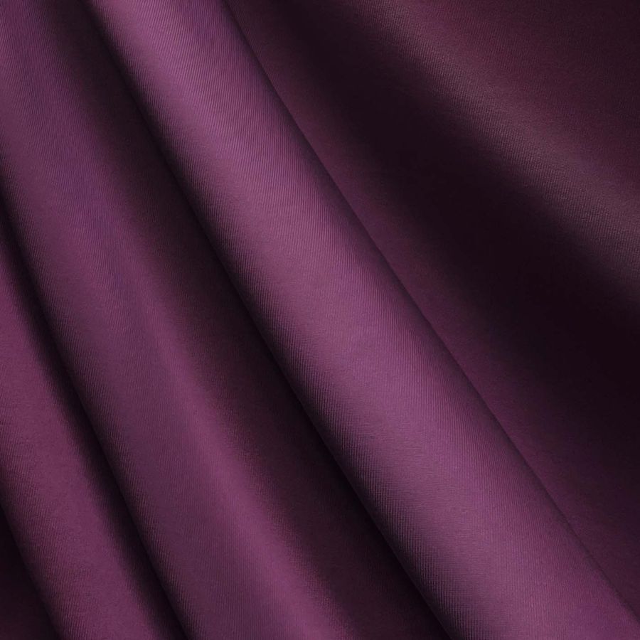 La tela base es una Lycra de Poliéster llamada Nairobi, con una composición de 82% poliéster y 18% elastano. Su gramaje es de 270 gr/m2 y su ancho es de 150 cm. El color liso impreso en esta tela es de tonalidad Morado Berenjena, cuyo CMYK es 60 93 36 45. Este color transmite elegancia y misterio, es el resultado de una mezcla de rojo y azul que crea un tono profundo y sofisticado. Es un color que combina muy bien con colores neutros como el blanco y el gris, y con tonos mostaza, dorados y verdes.