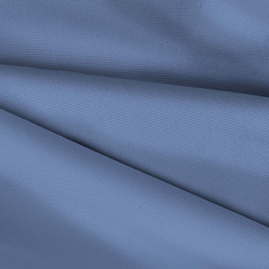 La tela base es Lycra de Poliéster - Nairobi de 270 gr/m2 de composición 82% poliéster y 18% elastano, con un ancho de 150 cm y una tecnología de impresión digital textil por sublimación en un color liso de tonos azules, con CMYK de 62 41 8 0. Este color se asemeja al color del agua del mar y se combina muy bien con tonos blancos, verdes y turquesas.