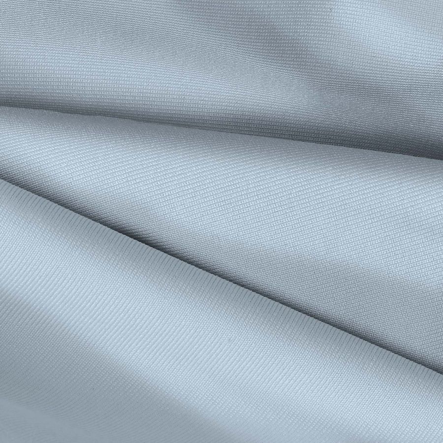 La tela base es una Lycra de Poliéster - Nairobi de 270 gr/m2 de color liso Azul del Golfo con un contenido de CMYK de 26 7 5 0. Este color se asemeja a un tono de azul suave que transmite paz y tranquilidad. Es perfecto para crear una sensación de frescura y pureza, en combinación con otros colores suaves como el blanco o gris claro. La tela está impresa con el color liso a una sola cara por impresión digital textil.