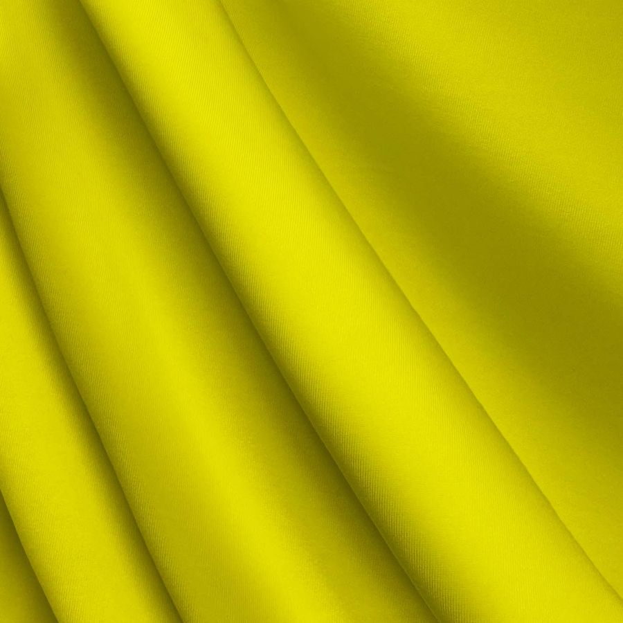 La Lycra de Poliéster - Nairobi de 270 gr/m2 es un tejido elástico y resistente compuesto en un 82% por poliéster y en un 18% por elastano, con una medida de ancho de 150 cm y un gramaje de 270 gr/m2. El color liso impreso es un Amarillo dorado, con una combinación de tintas que se reflejan en el CMYK: 12 3 93 0. Este color se caracteriza por ser vibrante, alegre y luminoso, similar al color del sol. Este tono amarillo se combina muy bien con colores fríos como el verde, azul y morado, y también con tonos cálidos como el naranja y el rojo.