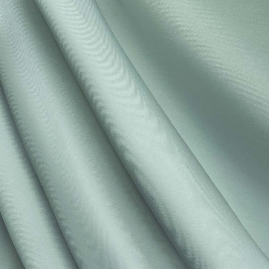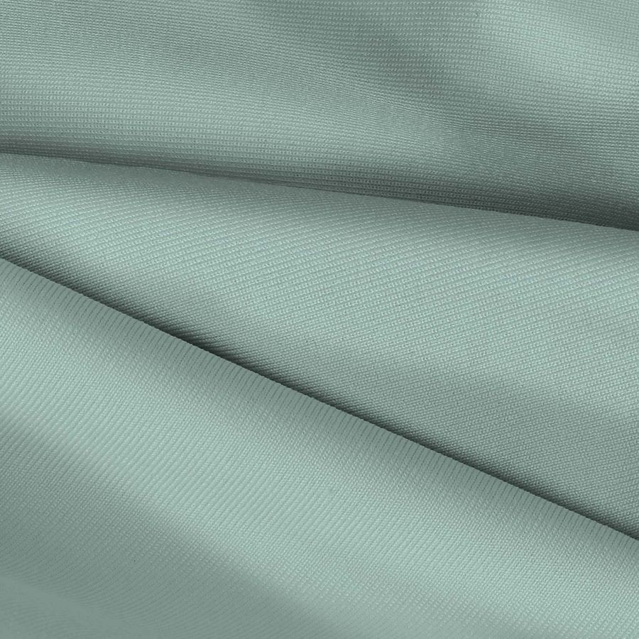 La tela base es Lycra de Poliéster - Nairobi de 270 gr/m2 en color liso impreso, con un CMYK de 39 10 28 0. El color secundario es un verde mar opaco que aporta una sensación de calma, armonía y frescura. Este color combina especialmente bien con tonos naturales como el marrón, beige y crema, así como con colores más fuertes como el fucsia o el rojo. También es un color que se usa habitualmente en prendas deportivas y de baño, por el frescor y naturalidad que aporta.