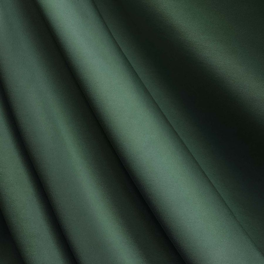 La tela base es una Lycra de Poliéster - Nairobi de 270 gr/m2, de color liso Verde bosque oscuro, cuyo CMYK es 75 45 69 48. Este color simboliza la naturaleza y la frescura, mientras que su tonalidad oscurecida evoca la profundidad y la elegancia. Además, combina perfectamente con tonos tierra, amarillos y naranjas. Es importante señalar que el tejido está impreso con el color liso a una sola cara por impresión digital textil, lo que significa que el color se aplica únicamente en la superficie del tejido, y no penetra en las fibras.