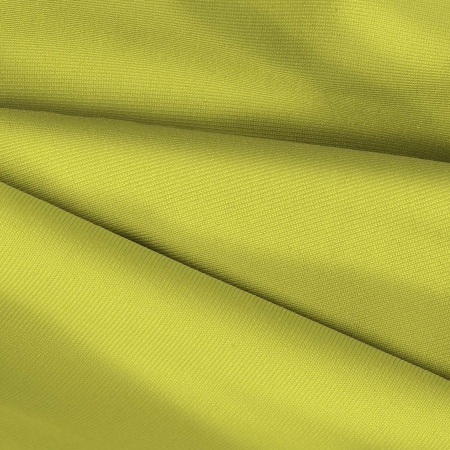 La tela base es una Lycra de Poliéster - Nairobi de 270 gr/m2 de 150 cm de ancho, compuesta por 82% poliéster y 18% elastano. El color liso impreso es un amarillo plátano con una composición CMYK de 19 0 82 0. Esta tonalidad aporta una vibrante energía y vitalidad con un toque suave y amigable. Combinado con colores verdes, azules y rosas, genera un ambiente fresco y agradable.