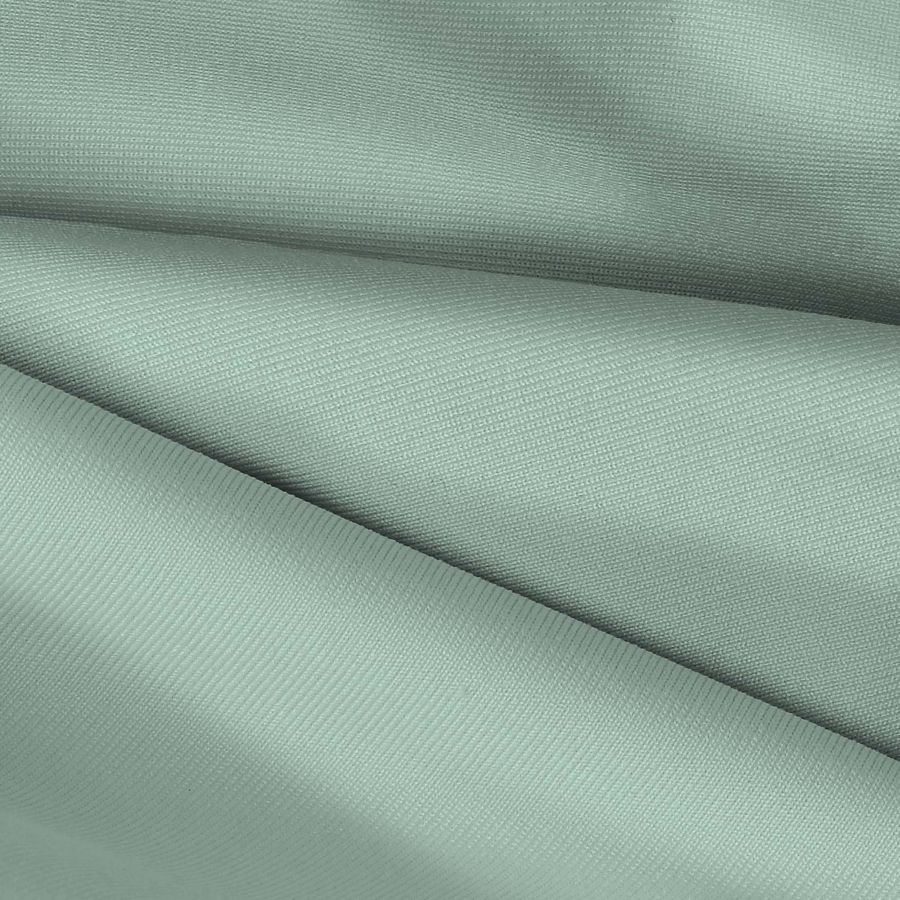 La tela base es una Lycra de Poliéster - Nairobi, con un gramaje de 270 gr/m2 y una composición de 82% poliéster y 18% elastano. Su color liso impreso es un verde azulado con un CMYK de 37 6 29 0. Este color evoca frescura, vitalidad y serenidad, transmitiendo así un carácter equilibrado y natural. Combina perfectamente bien con tonos amarillos, rojos y corales, lo que permite crear contrastes armónicos y llamativos.