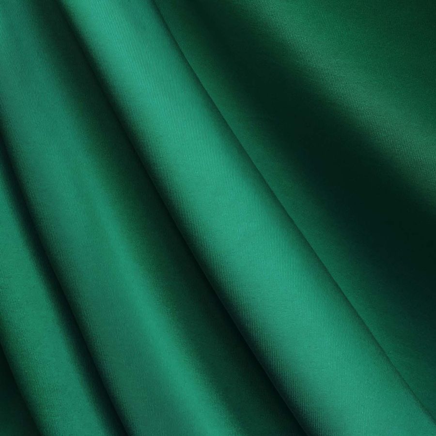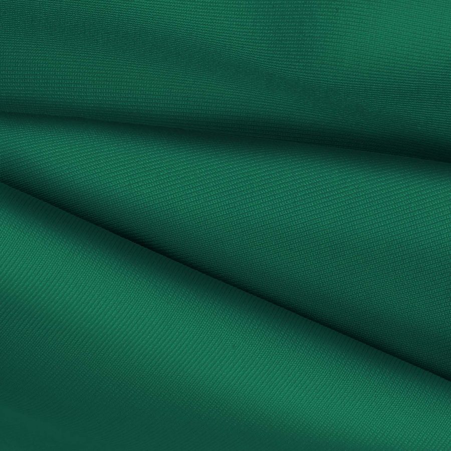 La tela base es Lycra de Poliéster - Nairobi de 270 gr/m2, con un ancho de 150 cm y una composición de 82% poliéster y 18% elastano. El color liso impreso es un tono verde intenso y profundo, con un CMYK de 88 31 74 22. Este color se combina perfectamente con otros tonos verdes más suaves o grises, neutros o blanco.