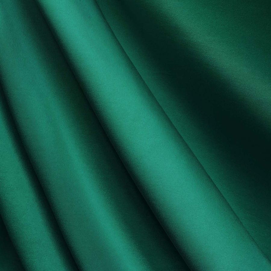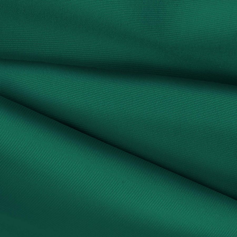 La tela base es Lycra de Poliéster - Nairobi de 270 gr/m2, un tejido elástico, suave y resistente con una composición de 82% de poliéster y 18% de elastano. El color liso impreso es un verde intenso y profundo, que se obtiene a partir de la combinación de la tinta cian (89), magenta (33), amarilla (69) y negro (26) con un CMYK 89 33 69 26. Este color simboliza la armonía, el equilibrio y la naturaleza exuberante, y combina especialmente bien con tonos neutros como el blanco o el gris.