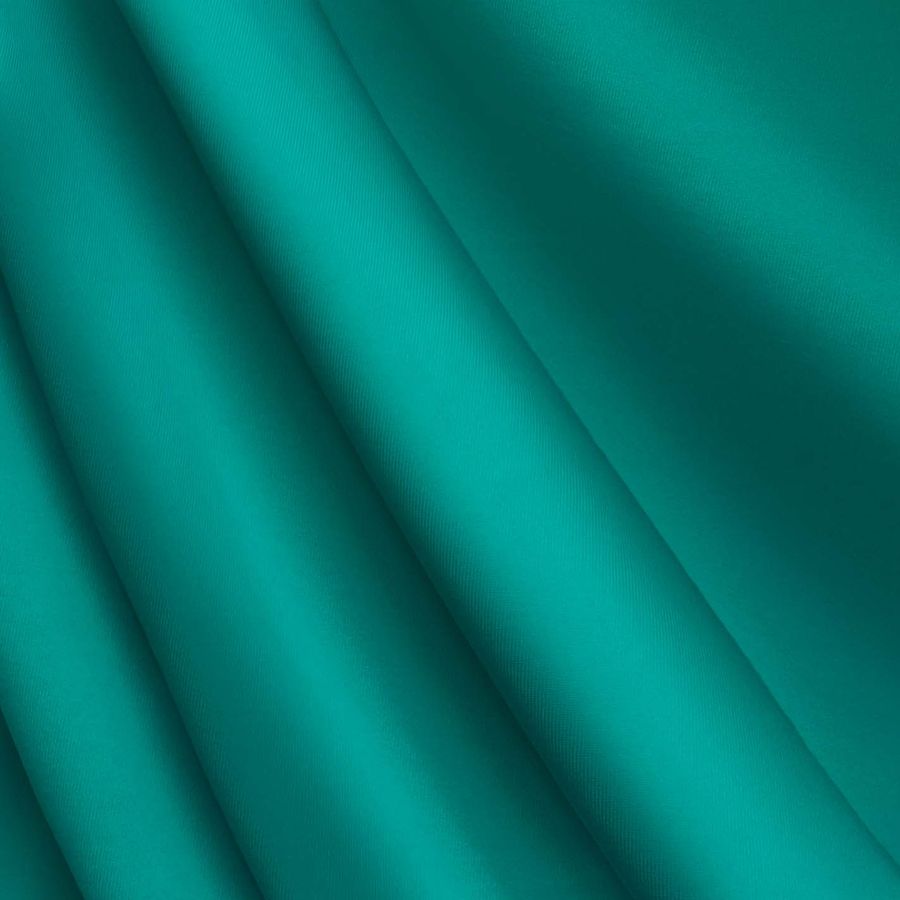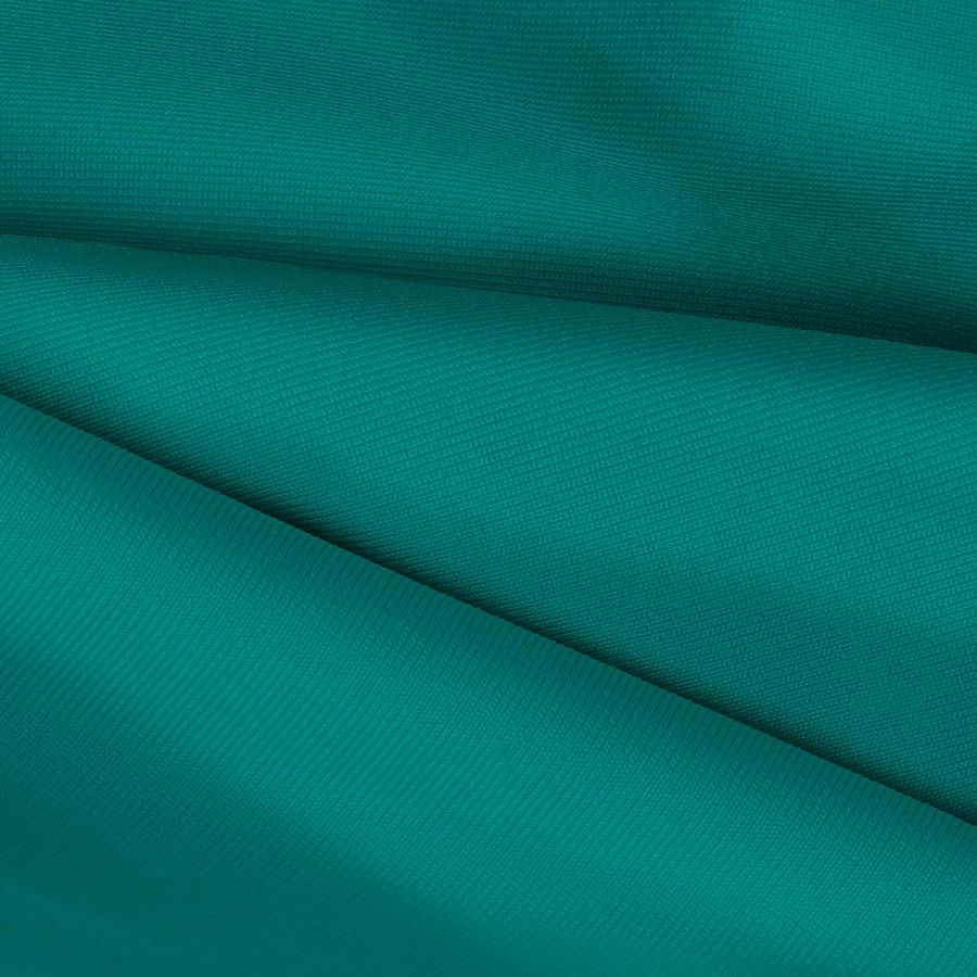 La tela base es de Lycra de Poliéster - Nairobi de 270 gr/m2 con una composición de 82% poliéster y 18% elastano. El color liso impreso es una combinación de verde y verde azulado con un CMYK de 84 25 53 9. Este color secundario evoca la naturaleza, la vida y el equilibrio. Combina espectacularmente bien con tonos marrones, amarillos y dorados, y aporta una sensación de frescura cuando se mezcla con tonos más claros como rosa pastel, beige y blanco. La tela está impresa con el color liso a una sola cara por impresión digital textil, lo que le da una apariencia más vibrante y nítida que el teñido tradicional.
