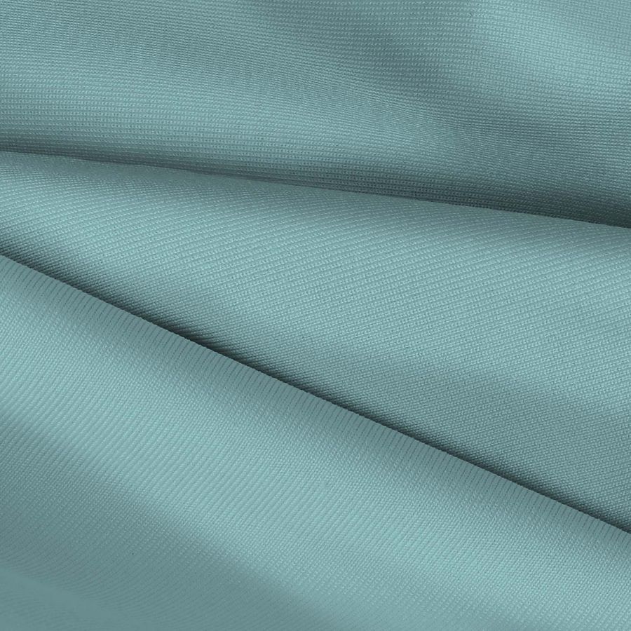 La tela base es una Lycra de Poliéster - Nairobi de 270 gr/m2, con una composición de 82% de poliéster y 18% de elastano. La tela es elástica y tiene textura, acabado resistente al cloro y un factor de protección UV muy alto de 50+. El color liso impreso es un verde de mar profundo con un CMYK de 50 10 26 0. Este color simboliza la naturaleza, la calma y la tranquilidad, y técnicamente se combina bien con otros tonos similares de verdes y azules. El tejido está impreso con el color liso a una sola cara por impresión digital textil.