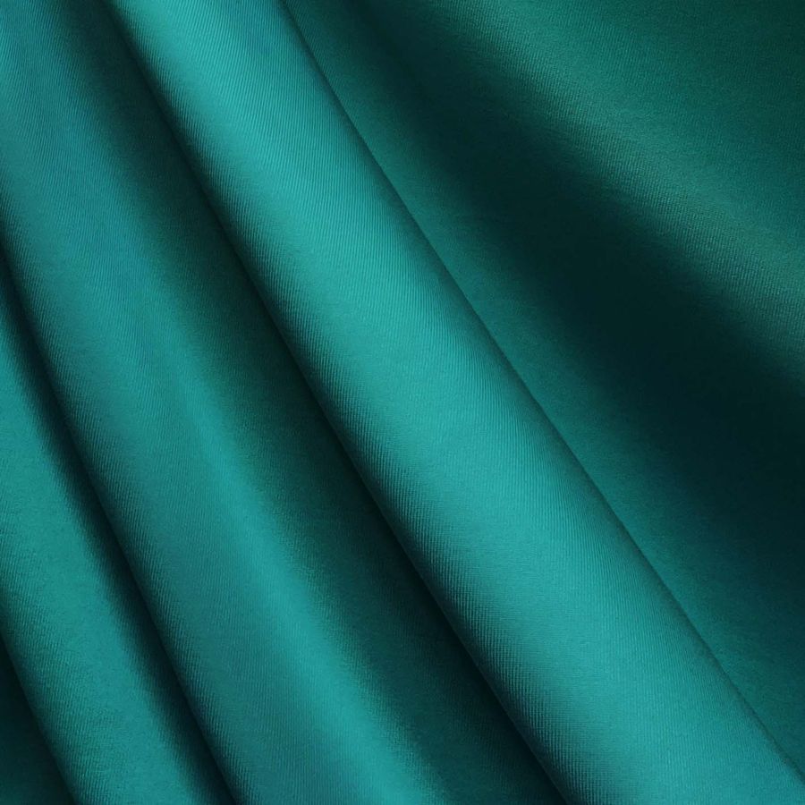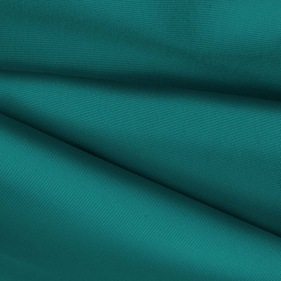 La tela base es Lycra de Poliéster - Nairobi de 270 gr/m2, impresa con un color verde azulado medio, cuyos valores de CMYK son 85 30 50 17. Este color se caracteriza por ser evocador de la tranquilidad y armonía de la naturaleza, evocando a la vegetación de los bosques en verano. El verde azulado medio combina especialmente bien con otros colores naturales como el blanco, gris y marrón.