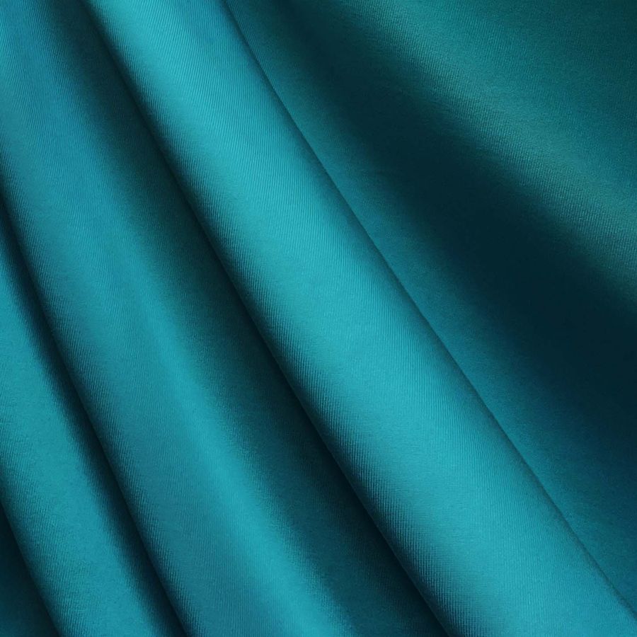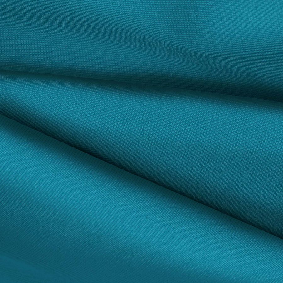La tela base es Lycra de Poliéster - Nairobi de 270 gr/m2, con una composición de 82% poliéster y 18% elastano. El color liso impreso es Azul Hosta con un CMYK de 83-30-33-11. Este color representa la serenidad del agua, que se combina perfectamente con colores neutros y tierra. Cabe destacar que el tejido está impreso con el color liso a una sola cara por impresión digital textil.