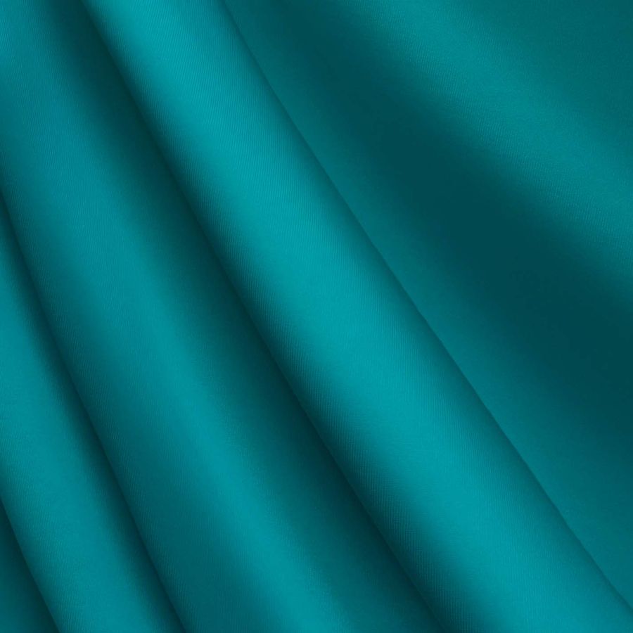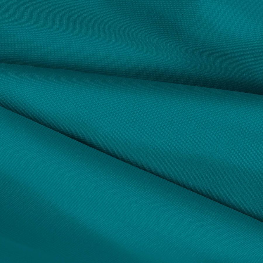 La tela base es una Lycra de Poliéster llamada Nairobi de 270 gr/m2, con una composición del 82% de poliéster y el 18% de elastano. El color liso impreso es una mezcla de verde y azul con un contenido de cian de 85, magenta 31, amarillo 42 y negro 17, lo que resulta en un tono vibrante y llamativo. Combinado con otros tonos de la misma paleta de colores, como el turquesa y el azul verdoso, amplifica su brillo y expresividad. La tela está impresa a una sola cara por impresión digital textil.