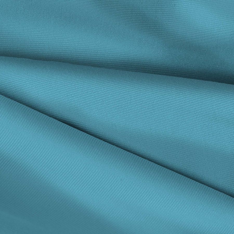 La tela base es Lycra de Poliéster - Nairobi de 270 gr/m2, con una composición de 82% poliéster y 18% elastano, y un ancho de 150 cm. El color liso impreso es un azul Hosta, cuyo CMYK es de 66 15 20 1. Este color se describe como fresco, relajante y tranquilizante, que sugiere estabilidad y confianza. Combina especialmente bien con tonos pastel, blancos y grises. La tela está impresa con el color liso a una sola cara por impresión digital textil.