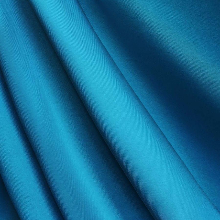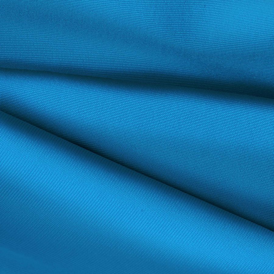 La tela base es una Lycra de Poliéster - Nairobi de 270 gr/m2 de color liso Azul, Mariposa Azul, con un CMYK de 80 31 2 0. Este tono se caracteriza por ser un azul vibrante que evoca sensaciones de libertad y tranquilidad. Combinado con tonos neutros como el blanco o el negro resulta elegante, mientras que con tonos más cálidos como el naranja o el rosa genera un contraste armonioso y jovial. De hecho, la tonalidad mariposa azul es muy parecida a la utilizada por las redes sociales más populares, lo que sugiere un uso amplio en prendas con vinculación a las mismas.