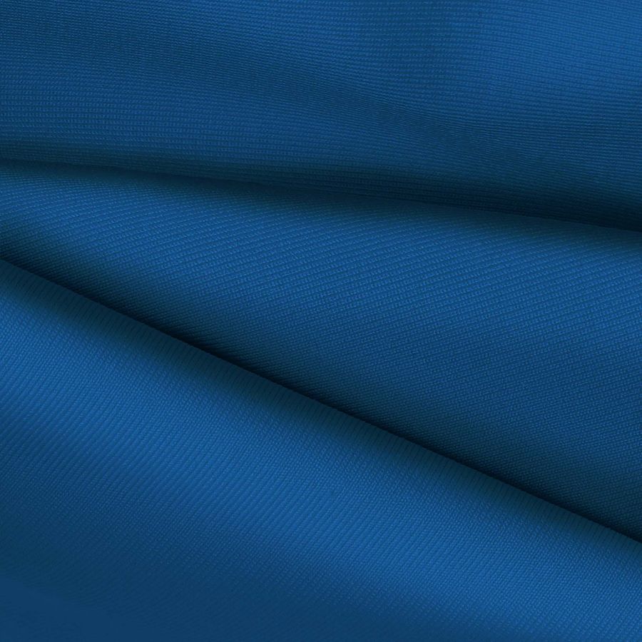 La tela base es una Lycra de Poliéster llamada Nairobi de 270 gr/m2 en un tono azul intenso, con un CMYK de 96 64 22 6. El color secundario, el arrendajo azul, se describe como un tono azul verdoso en el que predomina el azul. Combina especialmente bien con tonos neutros como blanco, gris y negro, pero también con otros tonos de azul. Es importante destacar que la tela está impresa con el color liso a una sola cara por impresión digital textil.