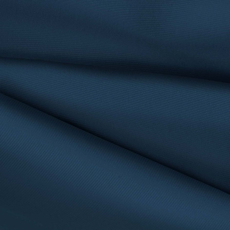 La tela base es Lycra de Poliéster - Nairobi de 270 gr/m2 en un color liso impreso en tonos de azul profundo. El CMYK del color liso es de 100 77 40 32. El color secundario representa la profundidad del océano y la estabilidad emocional. Combina particularmente con tonos turquesa y gris.