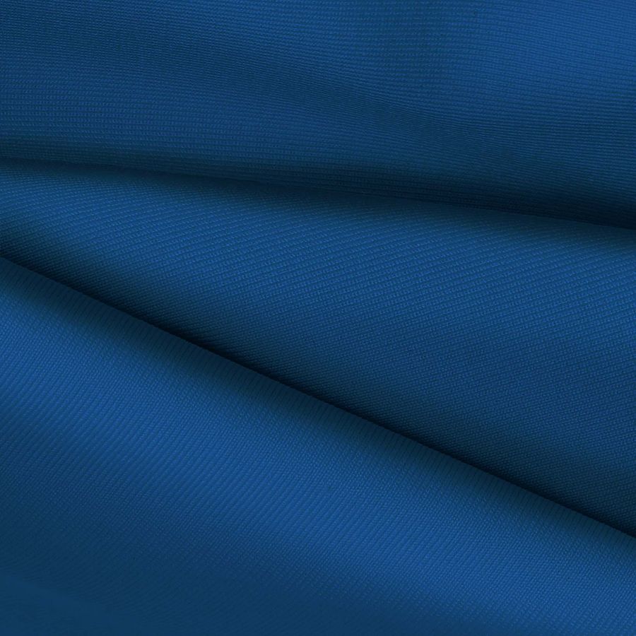 La tela base es Lycra de Poliéster - Nairobi de 270 gr/m2 en un color liso impreso en tonalidad Arrendajo azul, con un CMYK de 99 71 23 7. Este color secundario simboliza la libertad, el cielo y el movimiento. A nivel técnico, esta tela es elástica, resistente al cloro y cuenta con un Factor de Protección UV muy alto 50+. Combina perfectamente con tonos claros como el blanco y el gris, y también con tonos tierra como el beige y el marrón claro. Es importante destacar que este tejido está impreso con el color liso a una sola cara, por lo que debe manejarse con cuidado para evitar dañar la imagen impresa.