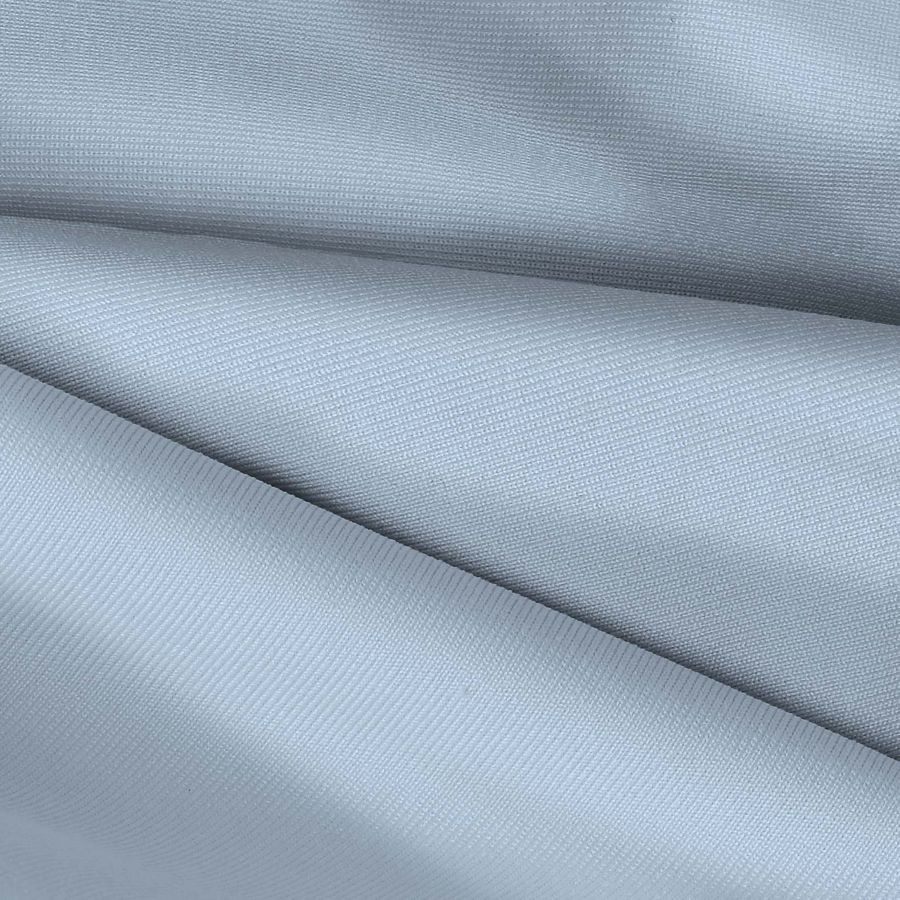 La tela base es una Lycra de Poliéster llamada Nairobi, con un gramaje de 270 gr/m2, compuesta por 82% Poliéster y 18% Elastano, de color liso Azul Pastel impreso con el CMYK 29 9 3 0 y una tecnología de impresión por sublimación en poliéster. El color secundario es un Azul intenso y brillante que combina perfectamente con tonos neutros y otros colores pasteles. Este tejido está impreso por una sola cara por impresión digital textil.