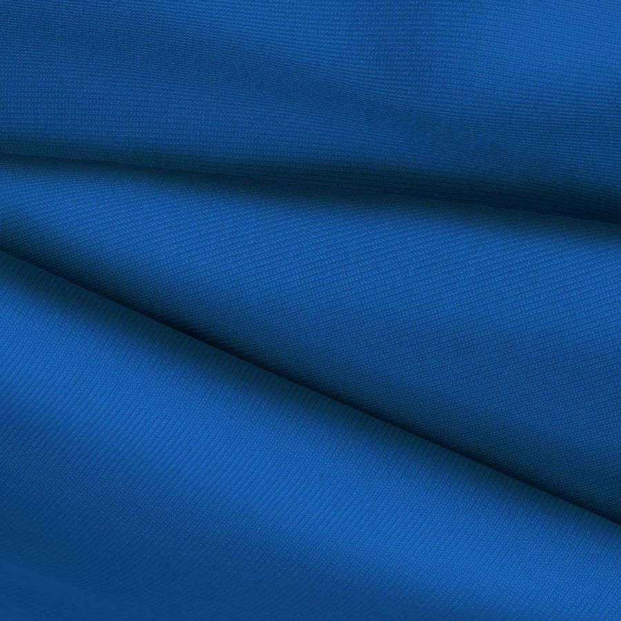 La tela base es Lycra de Poliéster - Nairobi de 270 gr/m2 en color liso Azul arándano, con un CMYK de 94 63 7 0. Este color es una mezcla de un tono azul intenso y rojizo, creando un matiz que rememora la baya del arándano. Este color secundario combina perfectamente con tonos verdes, dorados y rojos, logrando armonía y contraste. El tejido está impreso con el color liso a una sola cara por impresión digital textil, utilizando tinta de sublimación, no siendo un tejido tintado sino impreso por una sola cara.