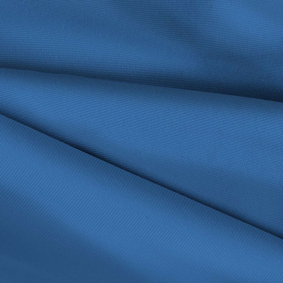 La tela base es una Lycra de Poliéster - Nairobi de 270 gr/m2, de composición 82% POLIÉSTER y 18% ELASTANO, con una medida de ancho de 150 cm. El color liso impreso es un azul Windows que presenta un contenido de CMYK de 83% de tinta Cyan, 54% de tinta Magenta, 5% de tinta Yellow y 0% de tinta Black. Este color secundario es una mezcla entre el cian y el magenta, reflejando un tono fresco e intenso, en particular combina muy bien con el blanco y el negro. Es importante destacar que el tejido está impreso a una sola cara por impresión digital textil.