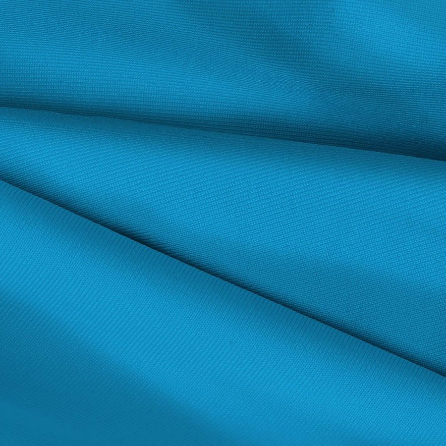 La tela base es una Lycra de Poliéster - Nairobi de 270 gr/m2, con una composición del 82% de poliéster y 18% de elastano, que se presenta en un ancho de 150 cm. El color liso impreso es un vibrante Azul neón con un CMYK de 76 23 1 0. El azul neón es un color vibrante y enérgico que transmite un sentimiento juvenil y audaz. Este color se asocia directamente con la tecnología y la modernidad, siendo muy utilizado en la moda urbana y deportiva.