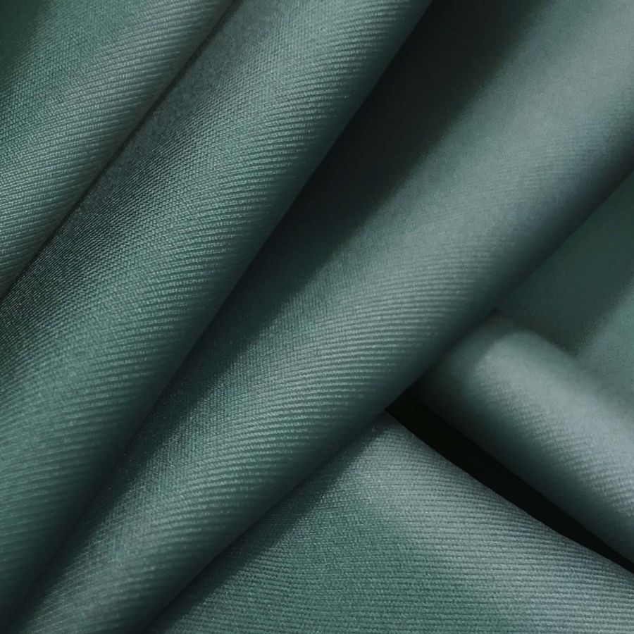 La tela base es Lycra Reciclada - Recycled de 190 gr/m2, compuesta de 85% poliéster y 15% elastano, con un ancho de 150 cm y un gramaje de 190 gr/m2. El color liso impreso en esta tela es un azul oscuro verdoso conocido como Teal profundo, con un CMYK de 74 45 54 42. Este color se caracteriza por evocar un ambiente tranquilo y relajado al igual que la profundidad del mar en una tarde soleada.