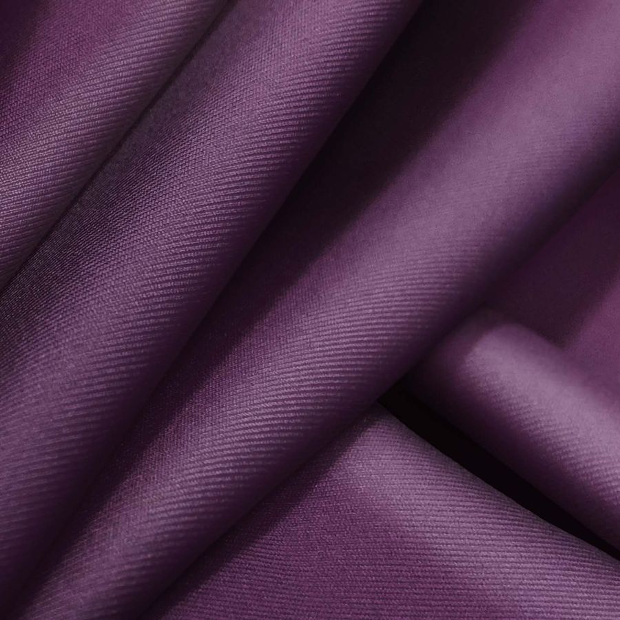 La tela base es la Lycra Reciclada - Recycled de 190 gr/m2, con una composición de 85% poliéster y 15% elastano. El color liso impreso es morado oscuro con un CMYK de 71 91 37 45. Este color secundario es una mezcla de azul y rojo intenso, lo que le da un toque misterioso y elegante. Complementa muy bien con colores como el dorado, el rosa claro y el gris.