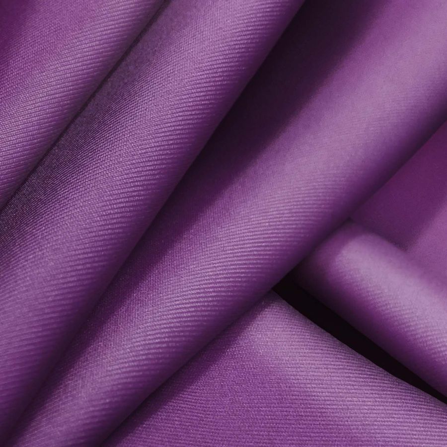 La tela base es Lycra Reciclada - Recycled de 190 gr/m2, compuesta por 85% POLIÉSTER y 15% ELASTANO, con un ancho de 150 cm. El color liso impreso es de tonos morados oscuros, con una combinación de tintas CMYK de 66 87 22 9. Este color secundario transmite tranquilidad, profundidad y sofisticación. Combina especialmente bien con tonos neutros como el blanco, gris y negro, y también con colores más vivos como el coral o el verde menta.