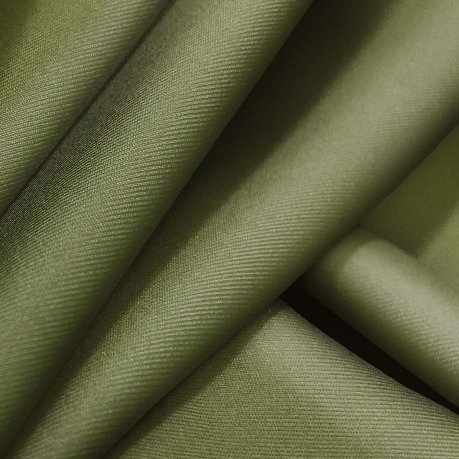 La tela base, Lycra Reciclada - Recycled, es una lycra compuesta por 85% poliéster y 15% elastano con un gramaje de 190 gr/m2 y un ancho de 150 cm. Su color liso impreso es una combinación de verde y bronce antiguo, que se obtiene mediante la mezcla de las tintas cyan (59), magenta (43), yellow (81) y black (37), dando como resultado un CMYK de 59 43 81 37. Este color puede combinarse perfectamente con tonos neutros como el blanco, el negro y el beige, así como con colores tierra y marrones.