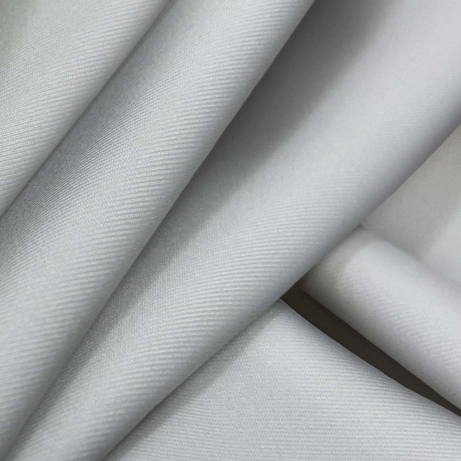 La tela base es Lycra Reciclada - Recycled de 190 gr/m2, compuesta por 85% poliéster y 15% elastano. El color liso impreso es Gris DarkGrey, reflejado en un CMYK de 34 23 25 4. Este color, mediante una combinación de cian, magenta, amarillo y negro, genera un tono oscuro de gris con matices azulados. El color secundario se caracteriza por aportar elegancia y sobriedad a cualquier diseño. Combinado con tonalidades más claras de gris, blanco y negro, logra crear efectos de contraste sofisticado. El tejido está impreso con el color liso a una sola cara por impresión digital textil.