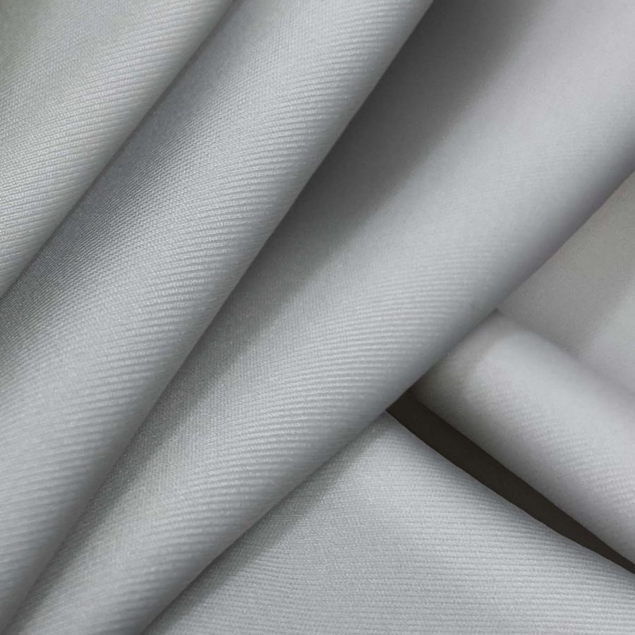 La tela base es Lycra Reciclada - Recycled de 190 gr/m2, compuesta por 85% poliéster y 15% elastano. El color liso impreso es Gris platino, con un CMYK de 43 32 31 9. Este color se describe como un tono suave y cálido que transmite elegancia y serenidad. Combina especialmente bien con colores neutros como blanco, negro y beige, y también con tonos suaves como rosa palo o azul cielo.