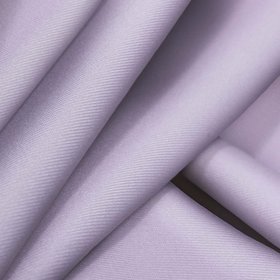 La tela base es una Lycra Reciclada - Recycled de 190 gr/m2, compuesta por 85% poliéster y 15% elastano, con un ancho de 150cm. El color liso impreso es un Morado o Púrpura medio, indicado por el CMYK de 35, 40, 5, 0 y se combina especialmente bien con los colores gris, blanco y negro. Este tejido está impreso con el color liso a una sola cara, mediante impresión digital textil, lo que lo hace tener una alta calidad de imagen y una gran resistencia a la decoloración.