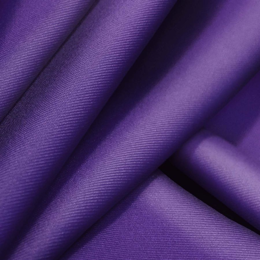 La tela base es Lycra Reciclada - Recycled de 190 gr/m2 en color morado, también conocido como monstruo morado, con un CMYK de 89 100 16 5. Este color secundario profundo y misterioso simboliza la introspección y la creatividad. Combina bien con tonos pastel, gris y rosa para un estilo más suave, y con negro, blanco y otros tonos de morado para un estilo más oscuro y sofisticado. La tela está impresa con el color liso a una sola cara mediante impresión digital textil, lo que significa que la tinta es absorbida por las fibras de la tela, creando una imagen duradera y vibrante.