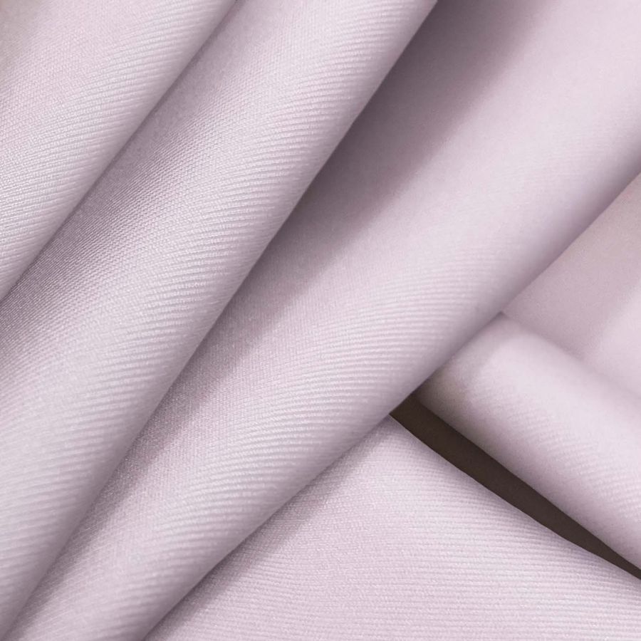 La tela base es Lycra Reciclada - Recycled de 190 gr/m2, compuesta por un 85% de poliéster y un 15% de elastano, con un gramaje de 190 gr/m2 y un ancho de 150 cm. El color liso impreso es morado-bígaro, cuyo CMYK es 9 27 3 0, lo que significa que tiene un tono predominante morado con un toque de rosa y blanco. Este color secundario facilita la combinación con otras tonalidades de rosa, morado, blanco y negro.