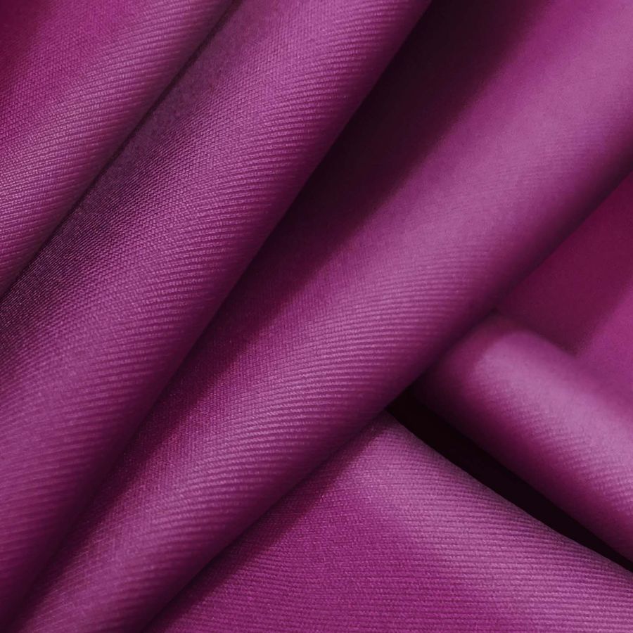 La tela base de este tejido es Lycra Reciclada - Recycled de 190 gr/m2, compuesta por un 85% de poliéster y un 15% de elastano. Tiene un gramaje de 190 gr/m2 y un ancho de 150 cm. Es de color liso y está impreso con un tono morado-berenjena cuyo código CMYK es 55 100 25 24. Este color es intenso y vibrante, perfecto para prendas de baño y deporte. Combina muy bien con tonos neutros como el negro, el blanco y el gris, así como con tonos de rosa y azul para crear un look más fresco y juvenil.