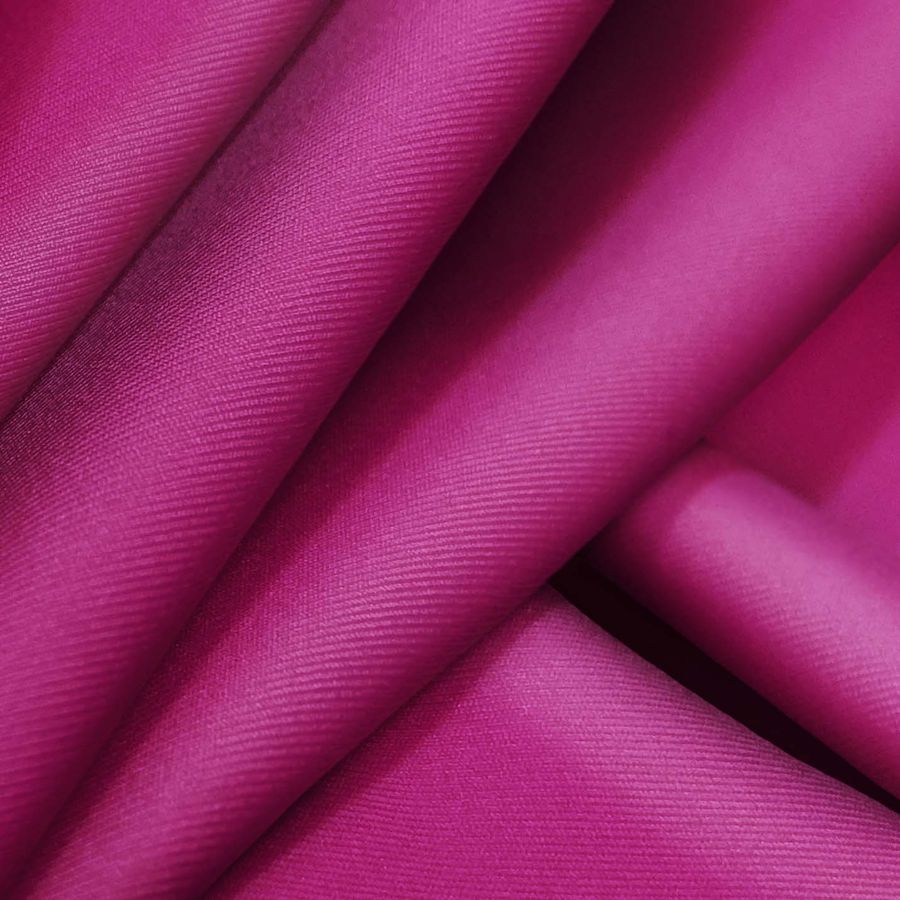 La tela base es Lycra Reciclada - Recycled de 190 gr/m2, con un ancho de 150 cm y una composición de 85% poliéster y 15% elastano. El color liso impreso es Morado - Ciruela morada, con un CMYK de 34 100 21 13. Este color se caracteriza por ser intenso y vibrante, con una tonalidad cercana al violeta oscuro. Combinado con otros colores, puede ser utilizado para crear looks elegantes y sofisticados, en particular con tonalidades neutras como el negro o el gris.