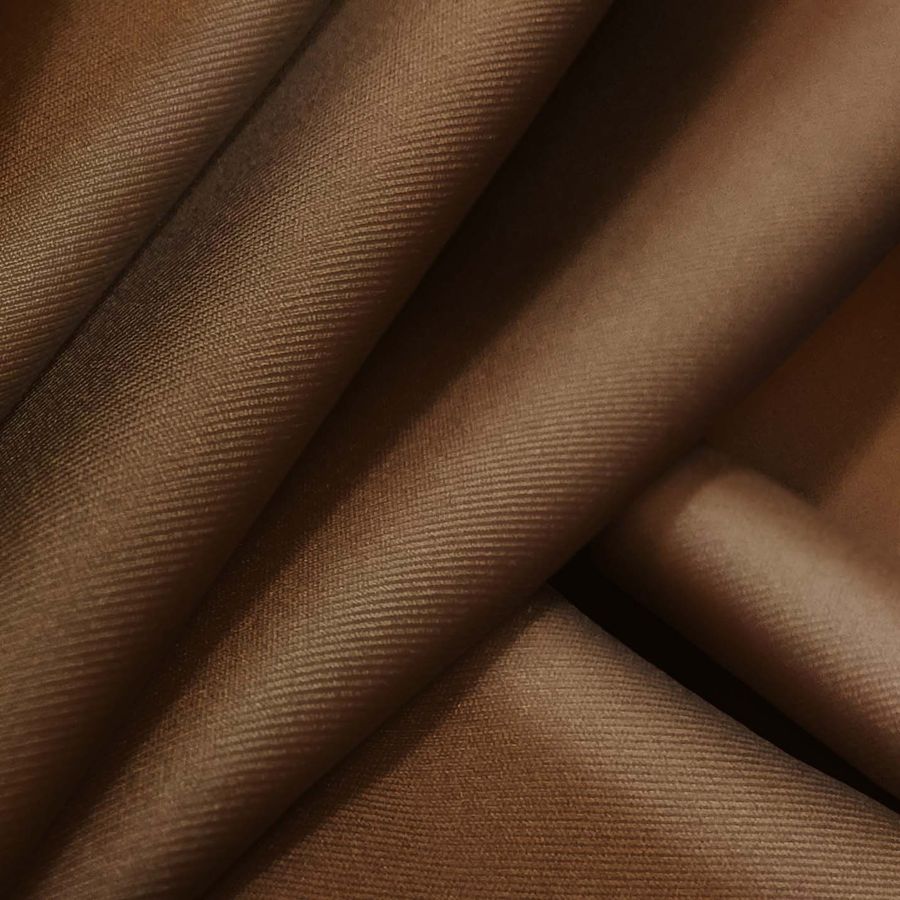 La tela base es Lycra Reciclada - Recycled de 190 gr/m2 en color marrón oscuro con tonos de cyan, magenta, yellow y black. Este color secundario proporciona a la tela un tono cálido y profundo, con un matiz natural y orgánico que la hace ideal para prendas de baño y ropa deportiva. Combina especialmente bien con colores tierra, verdes oscuros, naranjas y amarillos tiernos.