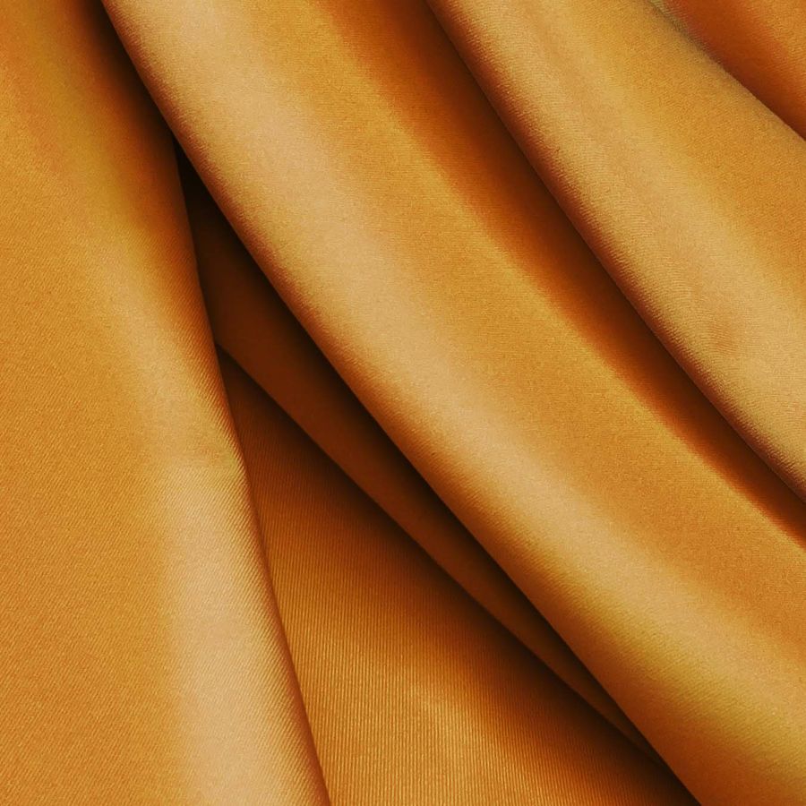 La Lycra Reciclada - Recycled es una tela suave y elástica compuesta por un 85% de poliéster reciclado y un 15% de elastano. Su gramaje es de 190 gr/m2 y tiene un ancho de 150 cm. El color liso impreso en esta tela es Naranja-Bronce, con un CMYK de 20 58 100 9. Este color es un tono cálido y brillante que transmite energía. Se combina bien con tonos tierra y grises para crear paletas elegantes y armoniosas.