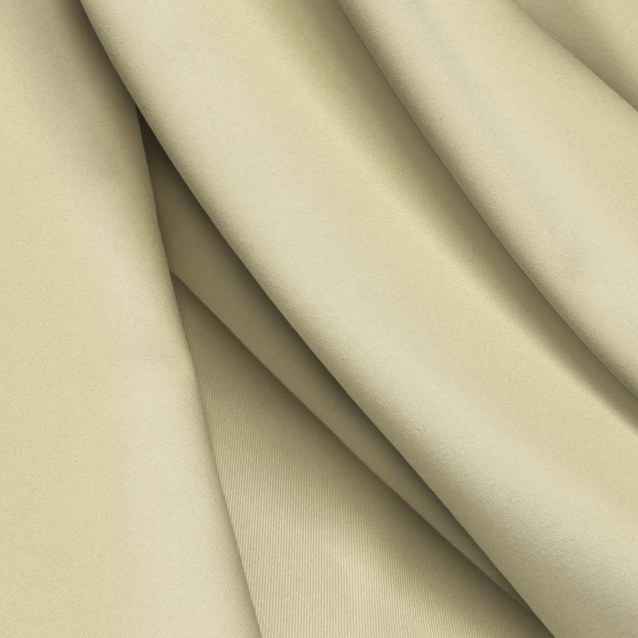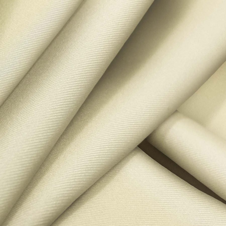 La Lycra Reciclada - Recycled es una tela elástica, suave y resistente al cloro con un gramaje de 190 gr/m2 compuesta por 85% poliéster y 15% elastano, con un ancho de 150 cm. El color liso impreso es Crudo Vainilla con un CMYK de 5 8 38 0. Este color secundario tiene un aspecto cálido y acogedor que combina bien con una amplia gama de colores, especialmente con tonos pastel y tierra.