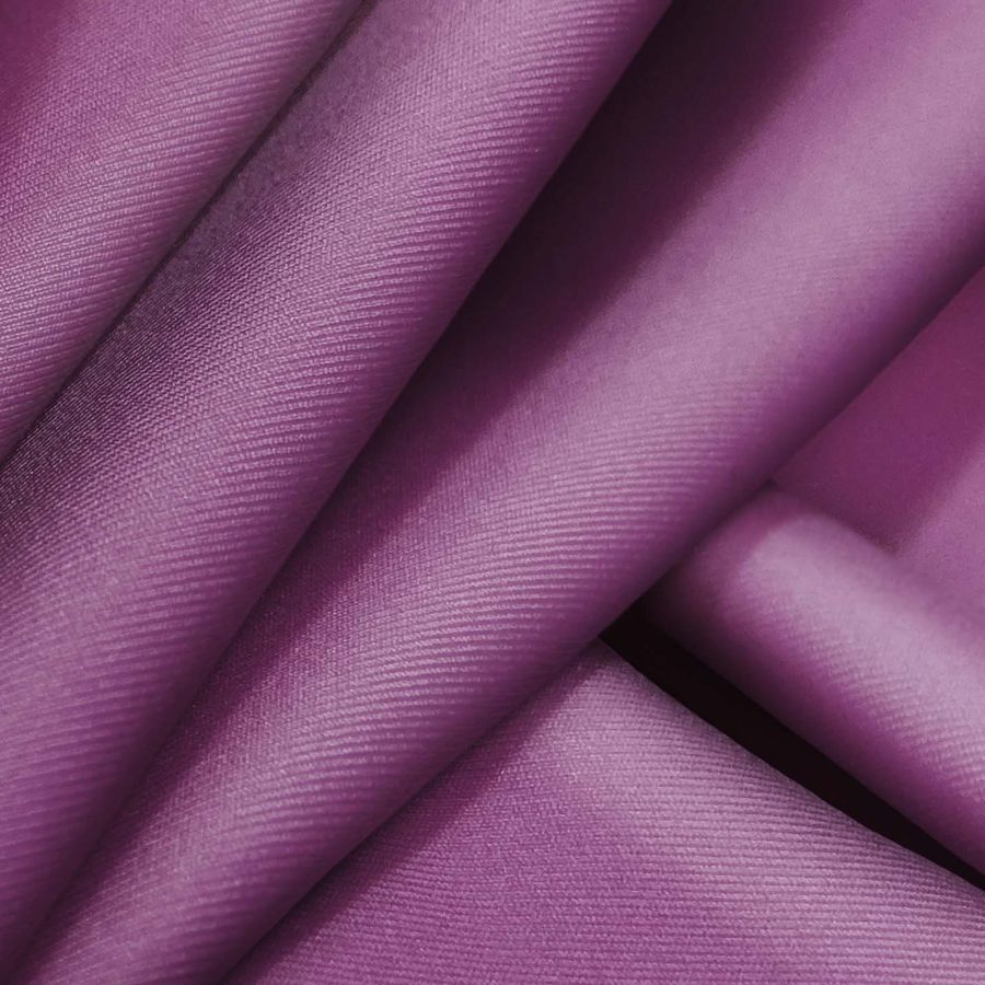 Esta tela se trata de la Lycra Reciclada - Recycled de 190 gr/m2, compuesta por un 85% de poliéster y un 15% de elastano. Su ancho es de 150 cm y se caracteriza por ser suave al tacto y elástica. El color secundario en este caso es un morado-violáceo con un CMYK de 54 78 26 11, que se combina perfectamente con tonos grises, azules y rosas. Cabe destacar que la tela está impresa con el color liso a una sola cara por impresión digital textil.