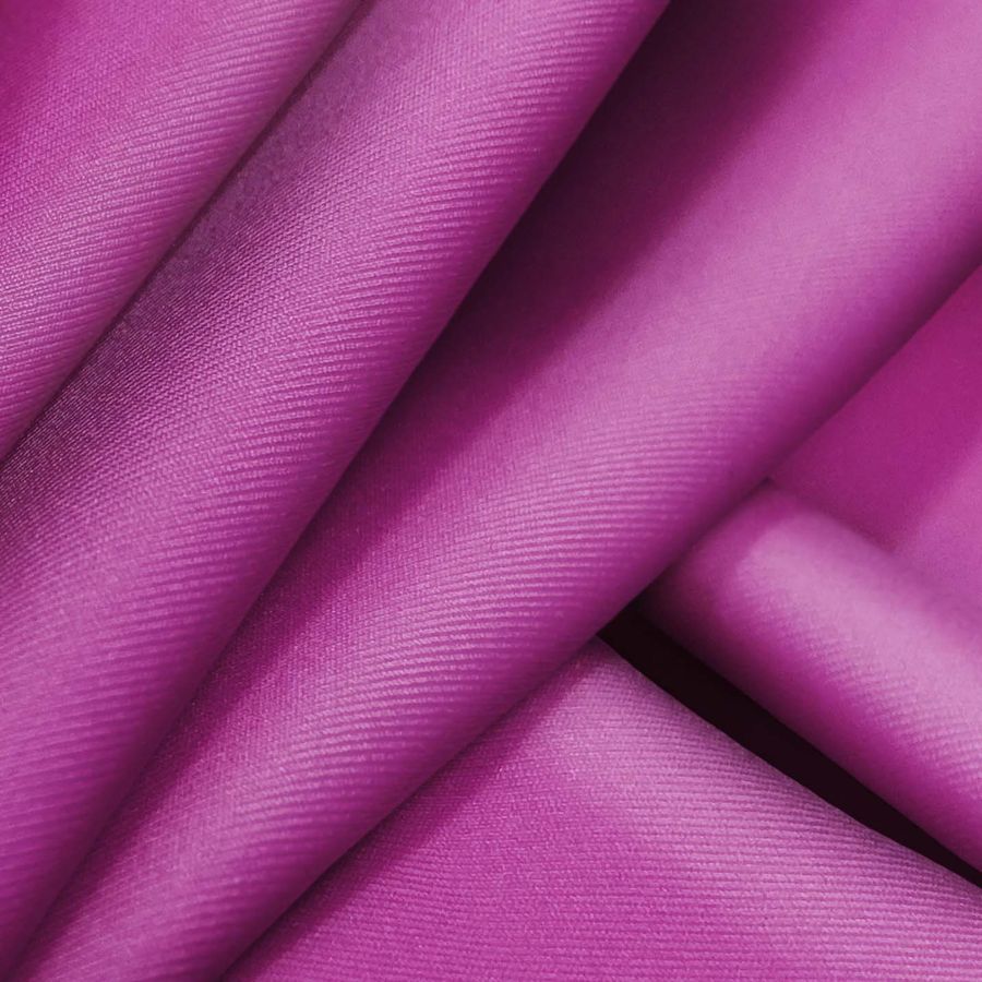La tela base es la Lycra Reciclada - Recycled de 190 gr/m2. El color liso impreso es un Morado con un ligero toque de Ciruela Rosa. Su CMYK es 38 87 2 0. Este color simboliza la creatividad, la intuición y la innovación. Técnicamente, es un color de alta saturación y brillo. Este color combina particularmente bien con tonos de rosa, violeta, azul y turquesa.