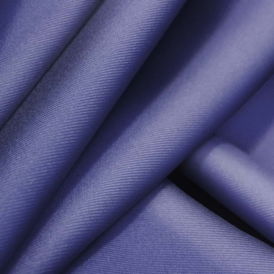 La tela base es la Lycra Reciclada - Recycled de 190 gr/m2, compuesta por 85% poliéster y 15% elastano, con una textura suave y elástica. El color liso impreso es un morado-azul marino púrpura, con el CMYK 80 73 22 7. Este color combina bien con tonos pastel y colores intensos, como el rosa claro o el azul turquesa. Cabe mencionar que la tela base está impresa a una sola cara y por impresión digital textil.