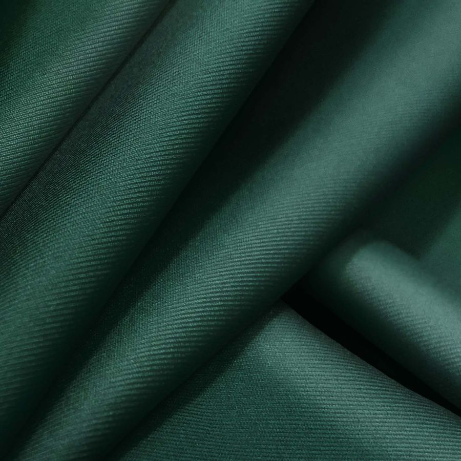 La tela base es Lycra Reciclada - Recycled de 190 gr/m2, compuesta por un 85% de poliéster y un 15% de elastano, con un ancho de 150 cm y una certificación GRS. El color liso impreso es un verde bosque oscuro con un CMYK de 91 50 73 66. Este color transmite la serenidad y la calma de la naturaleza, combinando perfectamente con tonos tierra y mostaza.