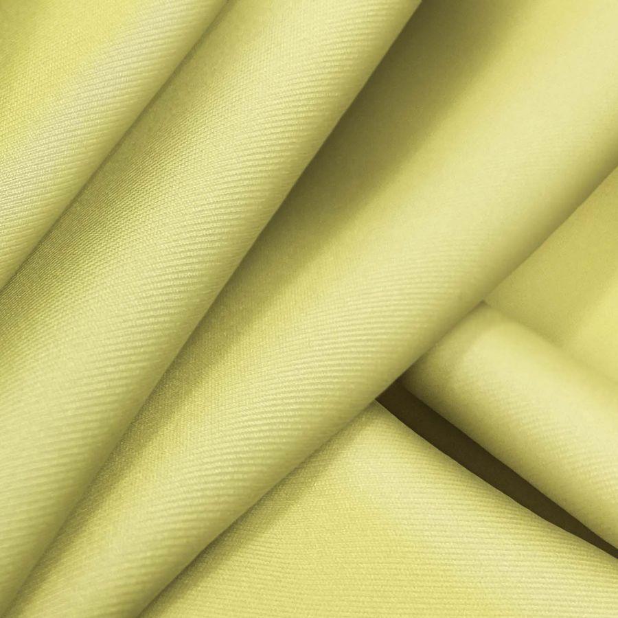 La tela base es la Lycra Reciclada - Recycled de 190 gr/m2. El color liso impreso es Amarillo Maíz con un CMYK de 11 4 66 0. El color es vibrante y fresco, reflejando la alegría y el optimismo. Combinado con tonos pastel, como el rosa y el verde, crea un efecto suave y delicado.