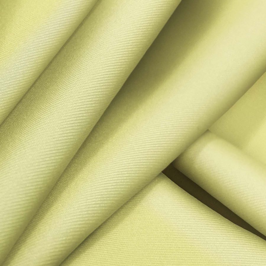 La tela base es Lycra Reciclada - Recycled de 190 gr/m2 con una composición de 85% poliéster y 15% elastano, con un ancho de 150 cm y un gramaje de 190 gr/m2. El color liso impreso es amarillo maíz, con un CMYK de 12 1 61 0. Este tono amarillo cuenta con un matiz cálido y vibrante. Se puede combinar con otros colores como el blanco, el negro, el gris o el morado.
