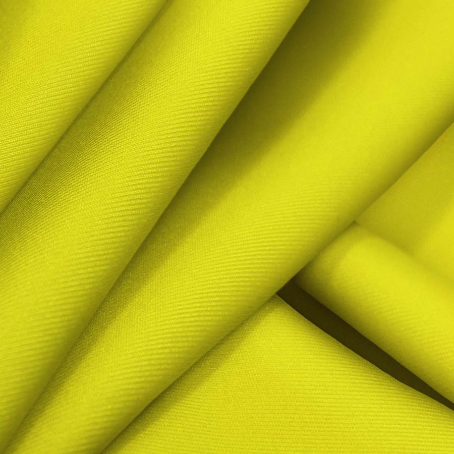 La tela base de este producto es Lycra Reciclada - Recycled de 190 gr/m2 de color amarillo plátano, con un CMYK de 21 6 94 0. El color secundario aportado por la tinta amarilla combina armoniosamente con tonalidades cálidas y terrosas, como el naranja, el marrón y el verde oliva. Es importante destacar que la tela está impresa con el color liso a una sola cara por impresión digital textil, lo que garantiza una alta calidad y resolución en la impresión.