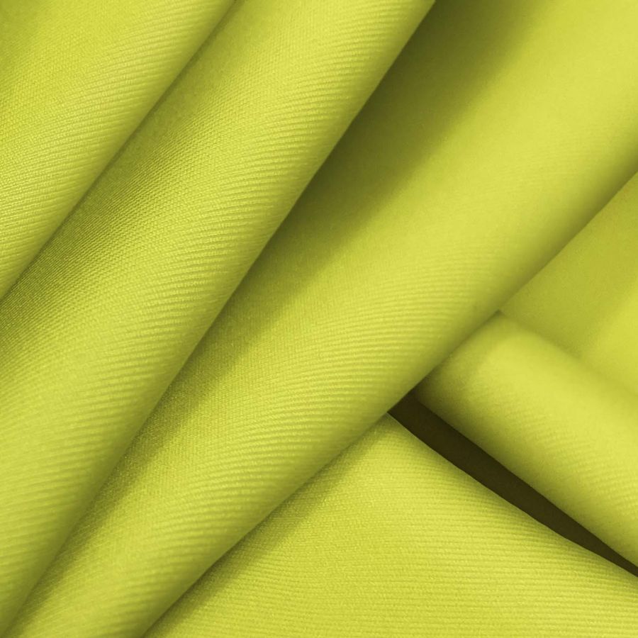 La tela base es la Lycra Reciclada - Recycled de 190 gr/m2, con composición de 85% polyester y 15% elastano. Su ancho es de 150 cm y se encuentra certificada como sostenible con el sello GRS. El color liso impreso es el verde ácido, que incluye 29 de cian, 3 de magenta, 86 de amarillo y 0 de negro en el CMYK. Este color es vibrante y llamativo, representando la frescura y vitalidad del medio ambiente. El verde ácido combina bien con tonos tierra, como beige y marrón claro.