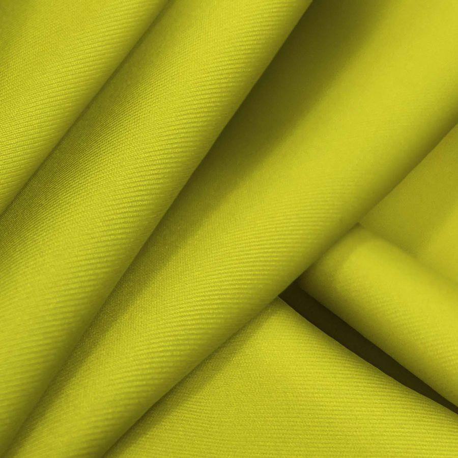 La tela base es la Lycra Reciclada - Recycled, con una mezcla de 85% poliéster y 15% elastano, lo que la hace elástica y suave al tacto, con un gramaje de 190 gr/m2 y un ancho de 150 cm. El color liso impreso es un tono verde olivo, representado por un CMYK de 36 20 98 5, lo que indica una alta presencia de amarillo y cian, con un toque de magenta y un bajo nivel de negro. Este color evoca a la naturaleza, la frescura y la tranquilidad. Además, combina perfectamente con tonos neutros como el blanco, gris y negro, así como con tonos pasteles y tierras.