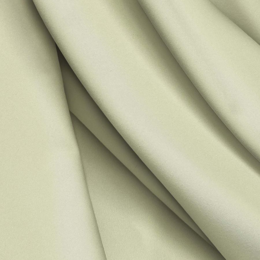La tela base es Lycra Reciclada - Recycled, con una composición de 85% de poliéster y 15% de elastano, con un gramaje de 190 gr/m2 y un ancho de 150 cm. El color liso impreso es una combinación de verde y crema, con un contenido de tinta cian de 9, tinta magenta de 1, tinta amarilla de 33 y tinta negra de 0, lo que da como resultado un CMYK de 9 1 33 0. El color secundario, crema, crea un tono suave y relajante que se complementa con colores de gama más baja como el gris y los tonos pastel.